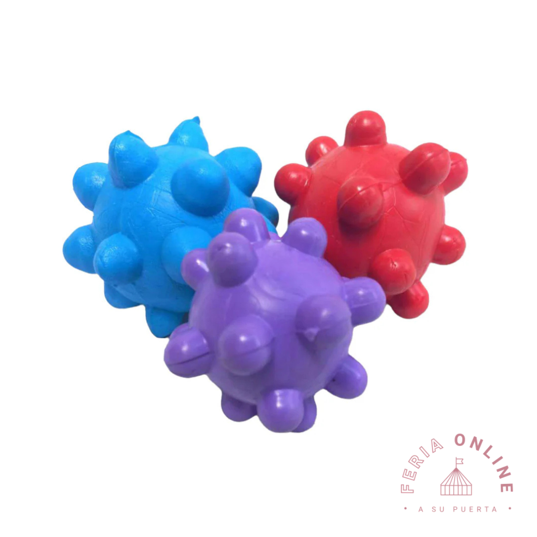 Pelota en forma de átomo, un juguete demasiado duradero y recomendado para perros de todas las razas y tamaños. El material macizo es el que se busca para esas mascotas que destruyen todos los juguetes. Está pelota con relieve redondo está diseñada para brindar horas de entretenimiento y ejercicio, no obstante, esta pelota es de una forma distinta y diferente a las demás pelotas, lo que hace llamar la atención en la mascota. Está hecho de un material resistente y duradero y no tiene partes cocas, lo que la hace segura para masticar y se adapta a todos los tamaños de perros, por lo tanto, es fácil de agarrar. Contamos con variedad de colores y tamaños, adicional a ello es un material que no es tóxico.